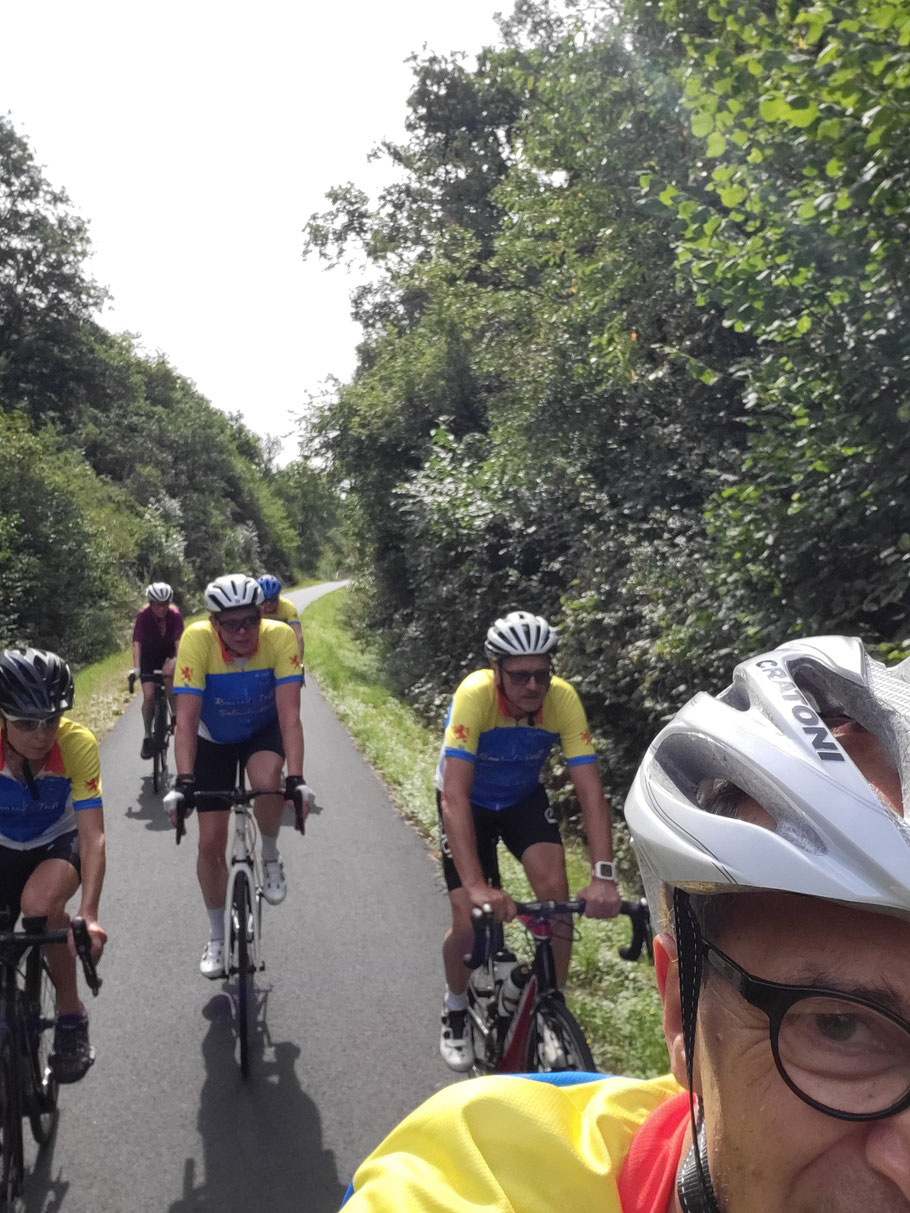 Das Sommerloch in unserer Truppe scheint tatsächlich überwunden zu sein, denn auch heute waren wir zu sechst am Start. Klaus hatte seine Partnerin Martina zum ersten mal mitgebracht - Evelyn, Peter, Ralf und ich waren die weiteren Teilnehmer. Klaus - der alte Knacker hatte sogar eine neue Sattelstütze montiert, die überhaupt keine Geräusche mehr machte - würde uns da vielleicht etwas fehlen? Wir sollten es erfahren. Denn es ging nach einer kurzen Reparatur an einem anderen Velo um kurz...